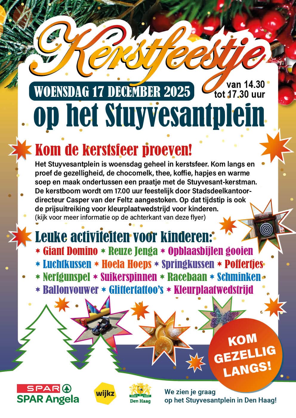 Het Stuyvesantplein is woensdag geheel in kerstsfeer. Kom langs en proef de gezelligheid, de chocomelk, thee, koffie, hapjes en warme soep en maak ondertussen een praatje met de Stuyvesant-kerstman.